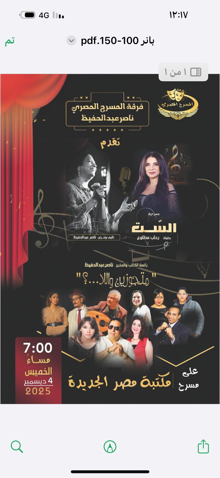 في ليلة استثنائية تعيد الروح للمسرح الحي، تفاجئ فرقة المسرح المصري جمهور مصر الجديدة بافتتاح مزدوج يحمل توقيع مشروع “المسرح الثري” للكاتب والمخرج ناصر عبدالحفيظ، حيث تُقدَّم مسرحيتان في أمسية واحدة تُعد من أبرز فعاليات ديسمبر الثقافية.