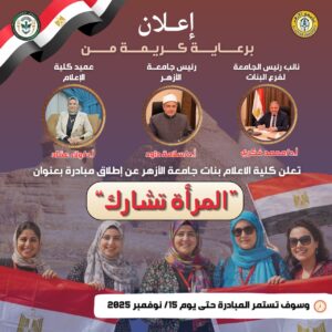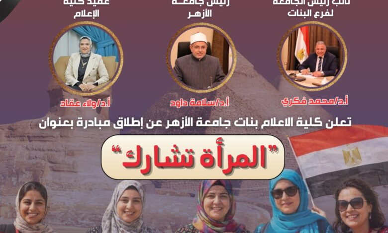 تحت رعاية الأستاذ الدكتور سلامة داوود رئيس جامعة الأزهر، والأستاذ الدكتور محمد فكري، نائب رئيس الجامعة لفرع البنات، والأستاذة الدكتورة ولاء عقاد عميد الكلية، تستعد كلية الإعلام بنات بجامعة الأزهر لإطلاق أولى فعاليات مبادرة “المرأة تشارك” يوم الاثنين 8 سبتمبر.