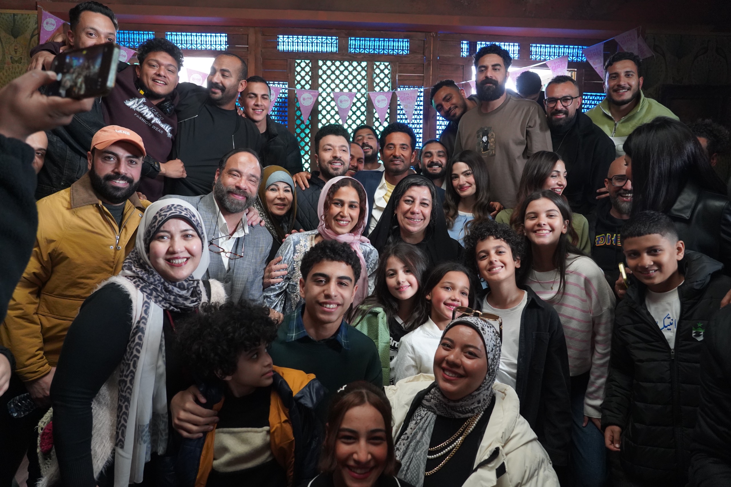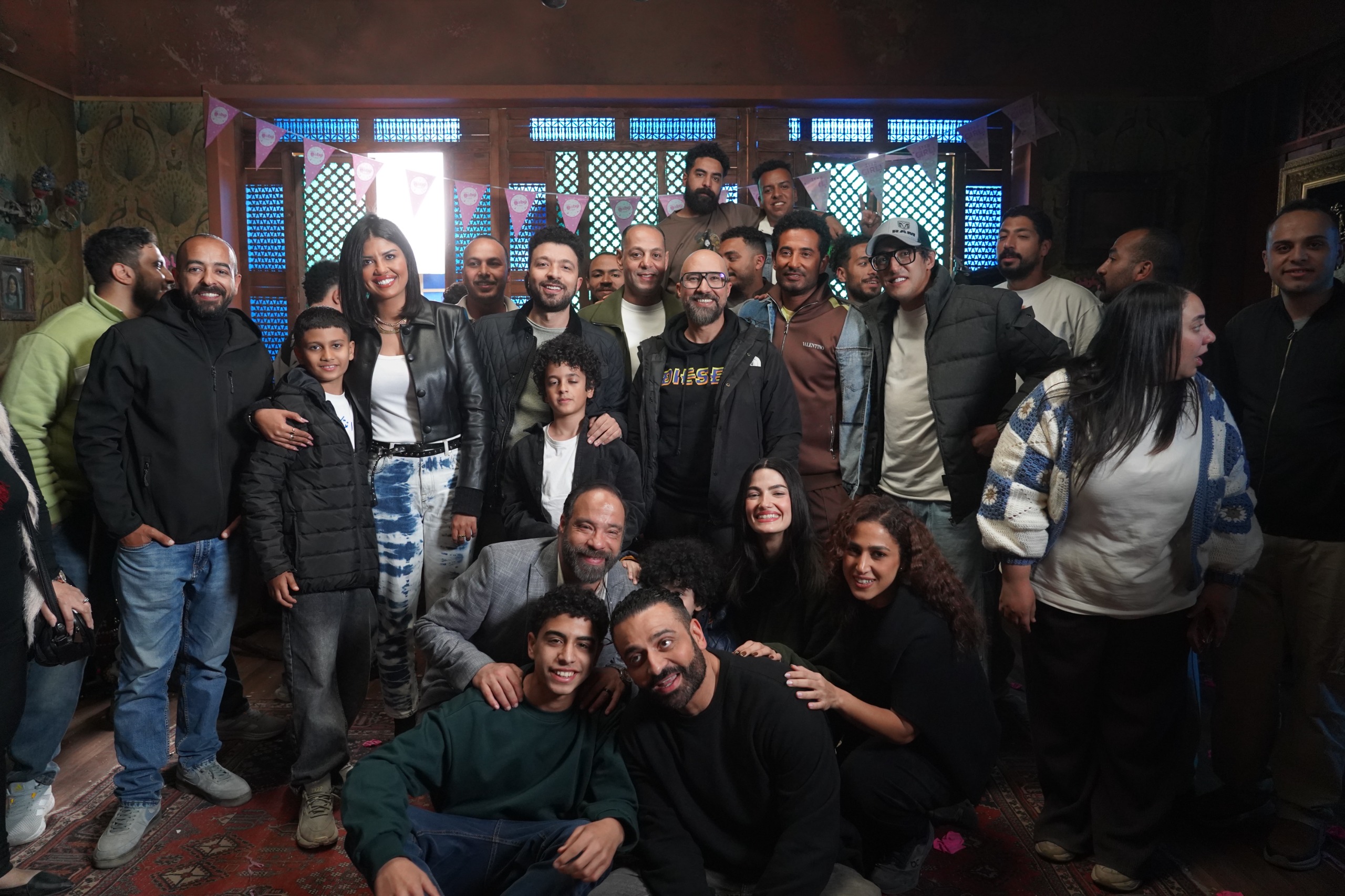 والتقط الحضور صورا تذكارية احتفالا بالفركش، مرددين اسم المسلسل و”عمرو سعد الأصل.. أحسن دراما في مصر”.