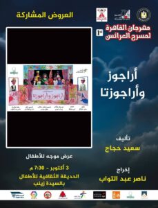 وأخيرا تم عرض «جويا» وهي مسرحية عرائس خيوط ماريونت من بطولة مجموعة من العرائس ومعهم ثلاث عناصر بشرية، انتاج المعهد العالي لفنون الطفل، وبطولة الاداء الصوتي: دكتورة ناهد الطحان، حور احمد، انس علاء الدين، چومانا أشرف، إمام وحيد، هبة الله علي، احمد مراد، تحريك عرائس: هاني نبيل، اسلام جلال، اسلام يوسف، هبة الله علي، صدام العدلة، دينا مجدي، تصميم ديكور وعرائس اماني سالم، ازياء رانيا محمود، مخرج منفذ هبة الله علي، تأليف عبده الزراع، دراماتورج دكتورة ناهد الطحان، تصميم استعراضات وإخراج هاني نبيل.