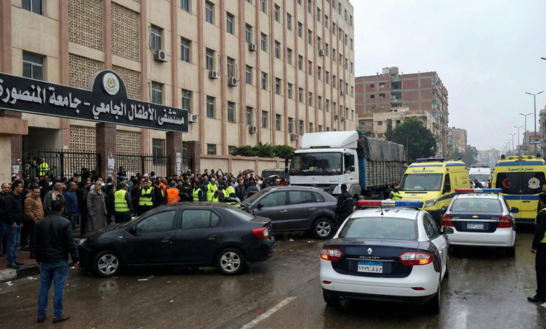 حادث مروع أمام مستشفى الاطفال الجامعي بالمنصورة