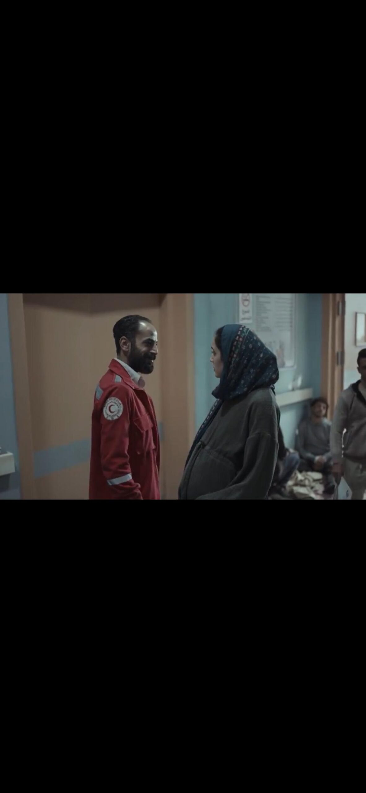 وتحاول منة شلبي تهدئتها وتتحدث معها عن الاسم التي تريد أن تسمى ابنها به، وتقول لها أنها تريد أن تسميه ناجي، ولكنها لا تعرف أين ستولد بغزة أم مصر، فترد عليها الدكتورة لتحاول طمئنتها وتقول لها “الاتنين واحد”.