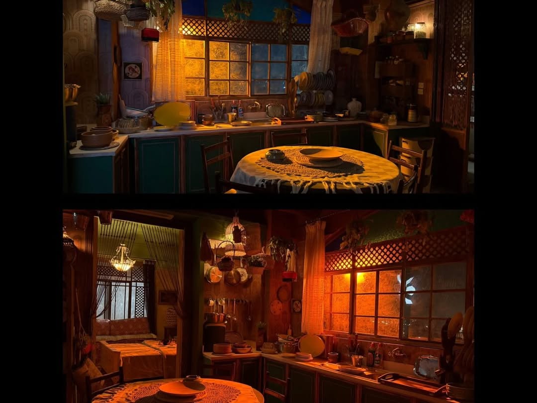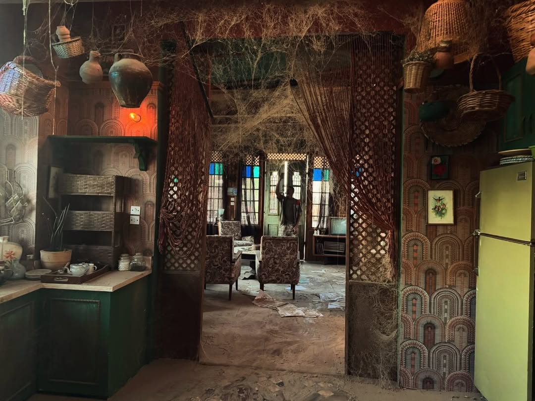 وكشفت مهندسة الديكور نادية عادل المليجي عبر حسابها على انستجرام، عن صور للحارة ولشقة عباس وكيف أجرت عليها أكثر من تغيير، لتظهر في مشاهد الفلاش باك التي تجمع بين عباس وزوجته وأطفاله، ثم بعد سجنه وتحولها إلى مكان موحش تغطيه الأتربة وتنتشر في كل جوانبه خيوط العنكبوت، ويهجره الدفء والابتسامة.