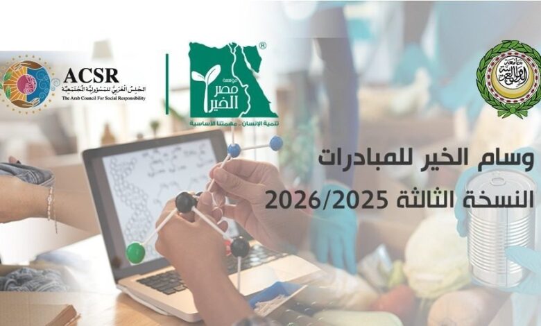 ترعي “جامعة الدول العربية” الموسم الثالث من وسام الخير للمبادرات بالتعاون مع مؤسسة مصر الخير، وبالتنظيم المشترك مع إدارة منظمات المجتمع المدني بجامعة الدول العربية، يعلن المجلس العربي للمسؤولية المجتمعية عن حفل “وسام الخير للمبادرات” والإعلان عن الفائزين ومراكزهم، وذلك يوم الأربعاء الموافق 15 ابريل 2026 بمسرح جامعة الدول العربية.